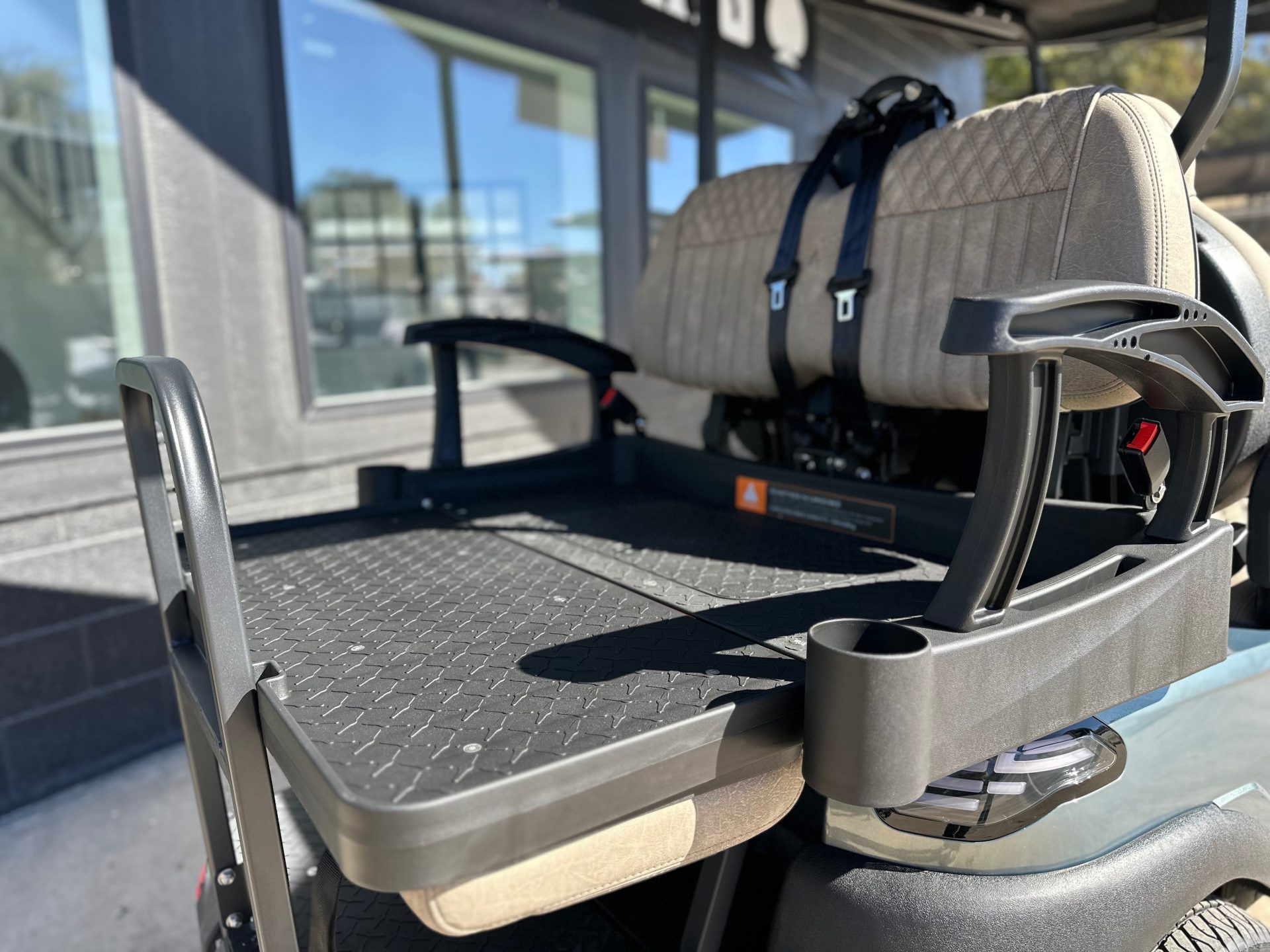 - Double-diamond Premium Seats: stylish and supportive seating with 3-point seat belts for all four passengers
